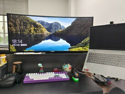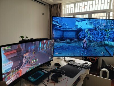 我平常使用的桌子不大,總寬度才1.6公尺,原先已經放了一個34"螢幕,所以新買的大螢幕沒辦法一起放,沒想到用了愛格升HX螢幕支架,最後竟然能讓我同時放下原本螢幕跟55"大螢幕!