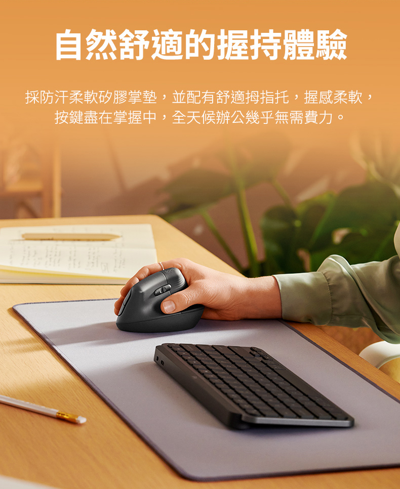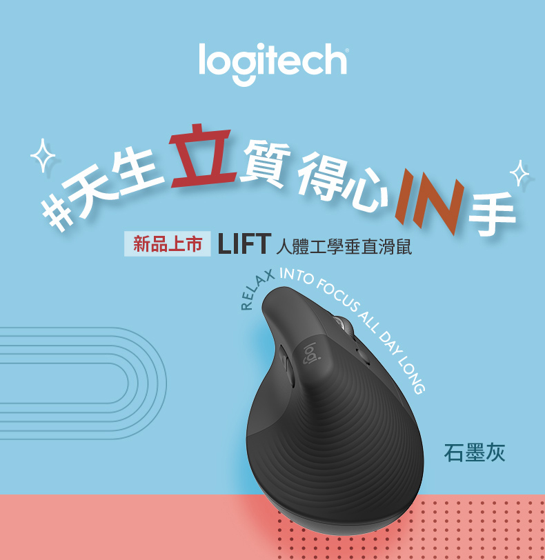 《羅技 LIFT 無線滑鼠》57度垂直角度,改善手腕姿勢!人體工學雙認證,自然舒適的握持體驗,上班不再度日如年