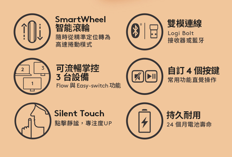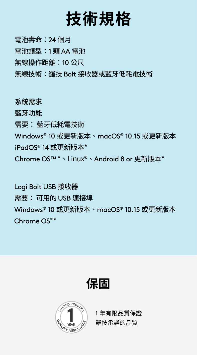 ・連接方式: 藍牙 和Logitech 羅技 Bolt