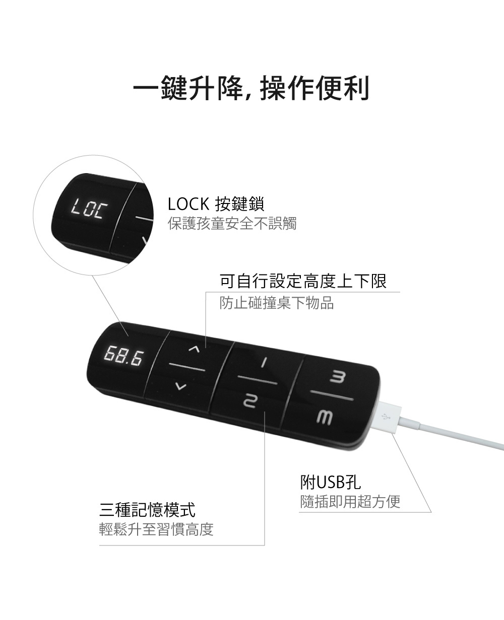 ✔️三節式升降高度 63.7-128cm,升降速度 38mm/s