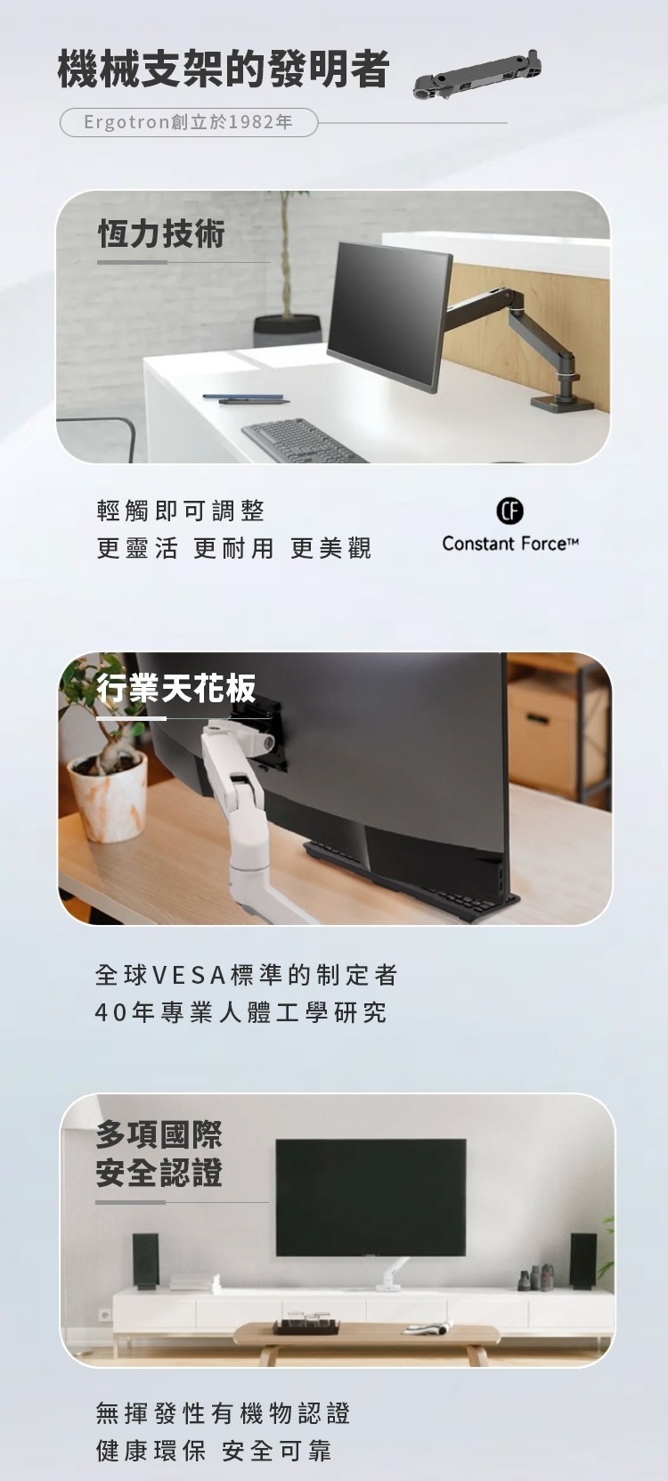 兩支獨立支架設計,可自由調整每個螢幕的方向,不論是橫向、縱向,或是從並排改為上下堆疊,都能輕鬆變換,滿足各種工作需求與視覺偏好。