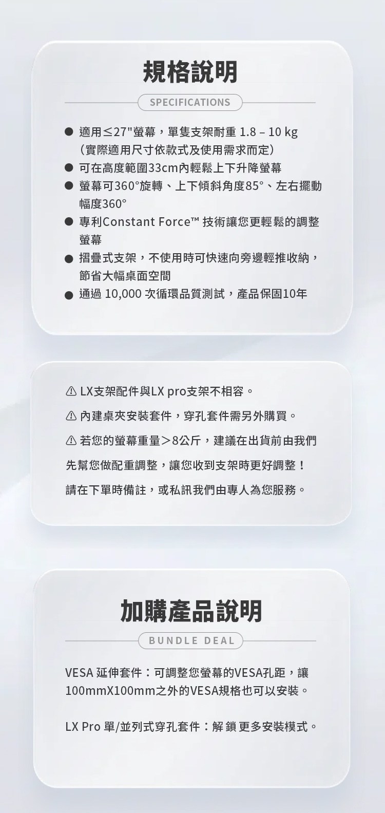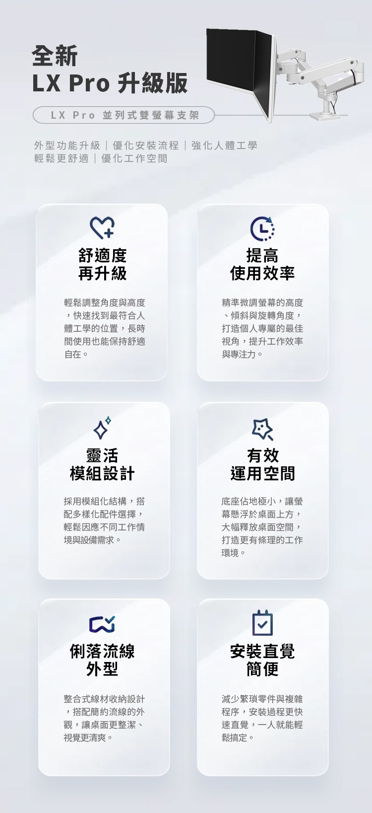 延續LX支架優點、設計加入更多功能,為你帶來更加卓越的使用者體驗。
