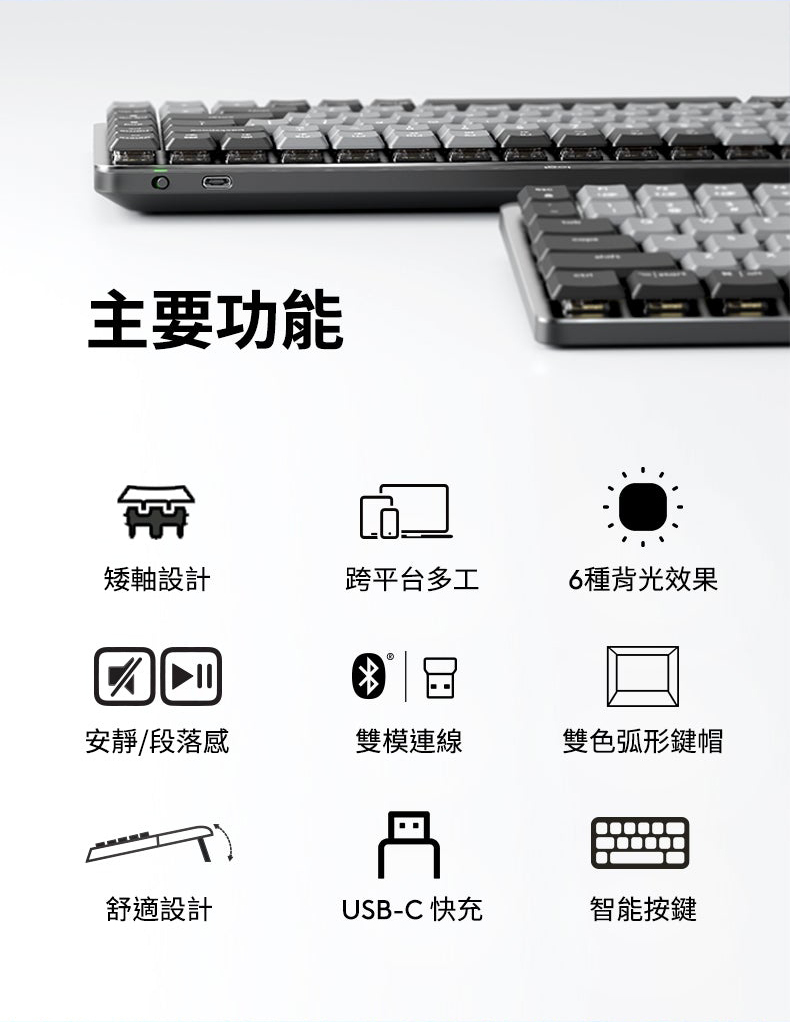 ◎ 弧型雙色鍵帽,舒適貼合指腹,輕鬆定位